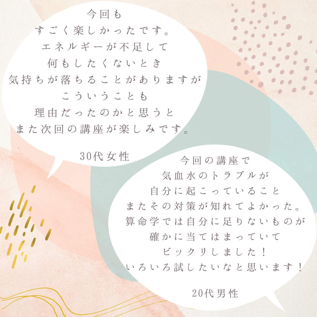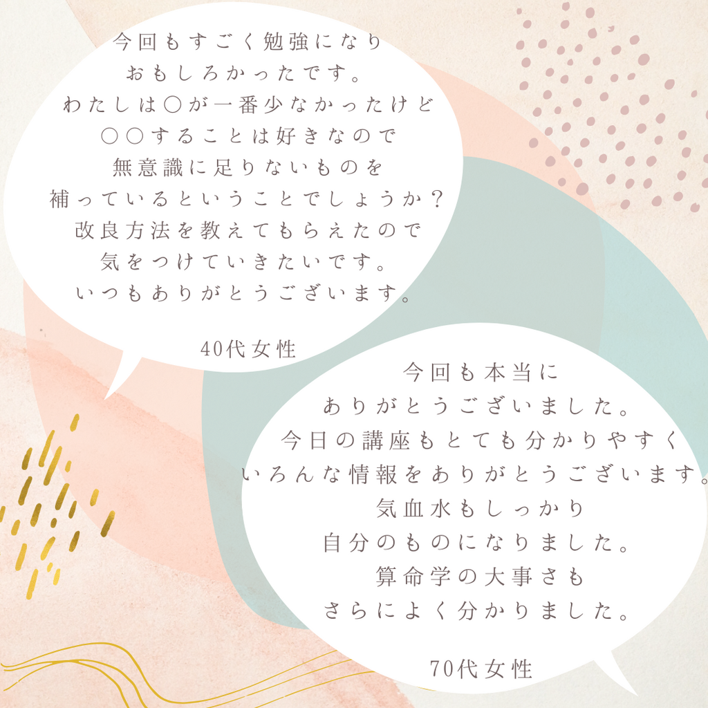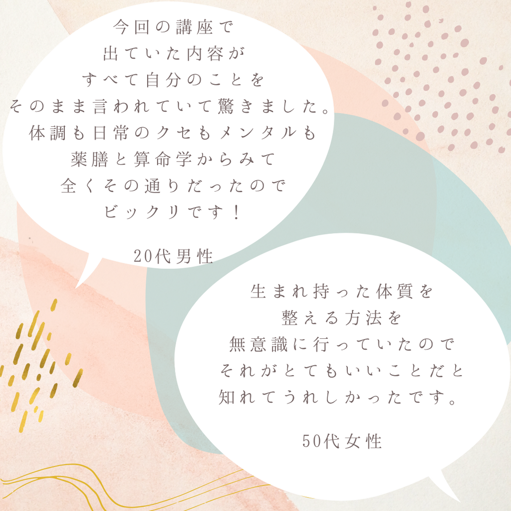 今回は薬膳と算命学の観点からそれぞれの体質を確認し、運動も含めて適切なダイエット方法をお伝えしました。